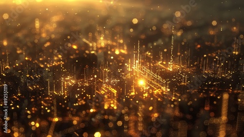 © Sam-th, Naklejka premium Golden City Lights Abstract Background.