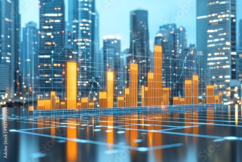 Obraz premium Golden cityscape reflected in tranquil waters at night showcasing urban...