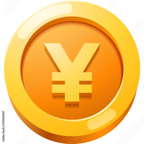 Fototapeta premium Golden Coin With Yen Symbol And Realistic Shine On Transparent Background 3D...