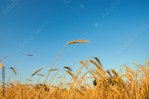 © Mykola Mazuryk, Obraz premium golden color crop in field in sunset time