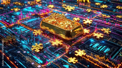 © June, Obraz premium Golden Conceptual Design with Digital Elements