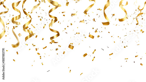 © MdManirul, Fototapeta premium Golden confetti celebration on transparent background