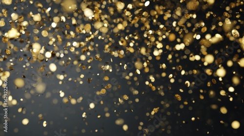Fototapeta premium Golden confetti particles dance in the air, creating a vibrant and festive...