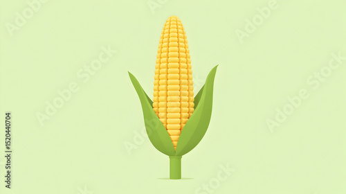 © S Imagination, Obraz premium Golden Corn Cob Flat Vector on Light Green Background with Clean Symmetrical Design
