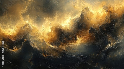 © Madhan, Naklejka premium Golden Cosmic Nebula Abstract Space Backgrounds