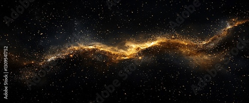Fototapeta premium Golden cosmic nebula swirls in dark space.