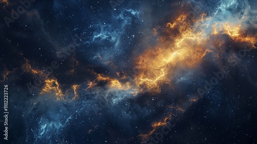 © IMG visuals AI, Fototapeta premium Golden cosmic rift radiant cosmos 3d rendering image. Starry sky. Stellar fracture. Universe galactic background wallpaper colorful realistic. Deep space phenomenon concept idea