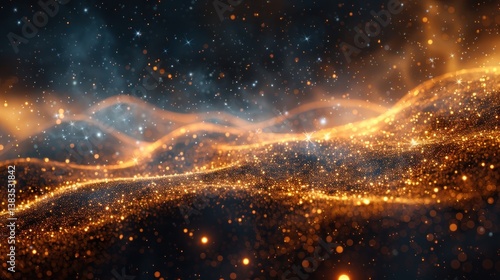Naklejka premium Golden cosmic waves in a nebula-like space background