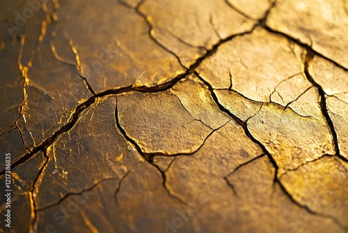 Fototapeta premium Golden cracked earth texture in sunlight highlighting surface patterns
