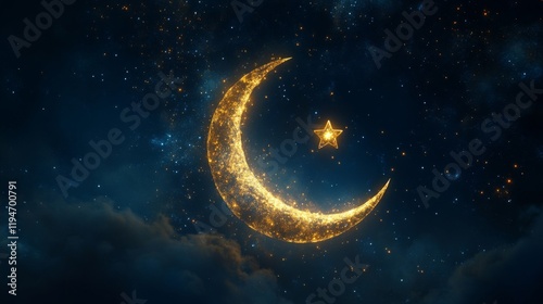 Fototapeta premium Golden Crescent Moon and Star in Night Sky