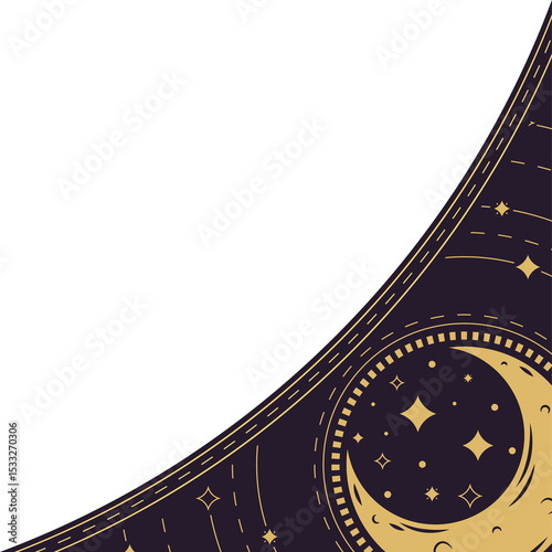 © vectorfusionart, Fototapeta premium Golden crescent moon and stars are floating in vector circle on transparent background, copy space
