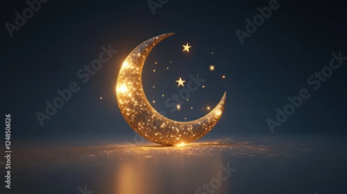 Obraz premium Golden Crescent Moon and Stars Night Sky Image