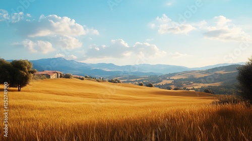 © Nayon, Obraz premium golden crops flourish under a sunset's brooding, majestic clouds