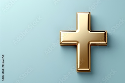 © Sandu, Obraz premium Golden Cross on Light Blue Background