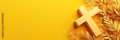 Fototapeta premium Golden Cross with Olive Branches on Yellow Background, Symbolizing...