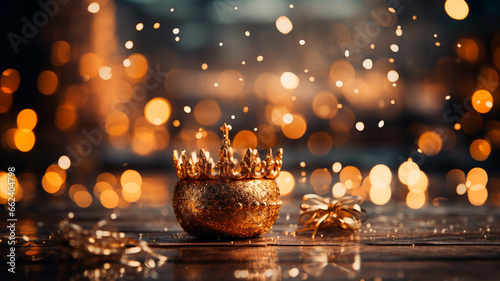 © ARAMYAN, Fototapeta premium golden crown with lights on a dark background