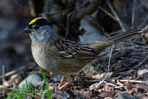 © Brian, Fototapeta premium Golden-crowned Sparrow standing on the ground