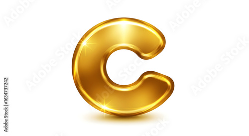 © Juli, Naklejka premium Golden 3D Letter C Isolated on White Background Shiny