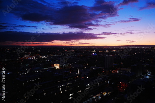 Fototapeta premium Golden Dawn over Perth Cityscape in Perth, Australia - オーストラリア パース 朝の街並み