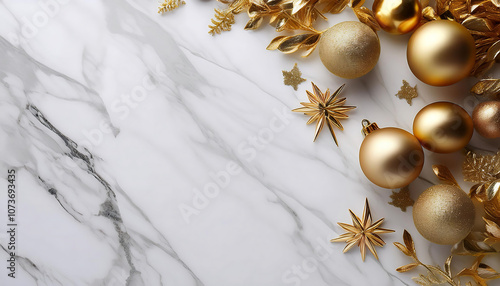 Fototapeta premium Golden decorations on a white marble surface adorn a vertical screen with ample copy space _1(507)