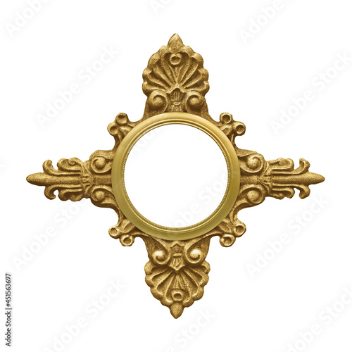 Fototapeta premium Golden decorative element with floral pattern isolated on white background....