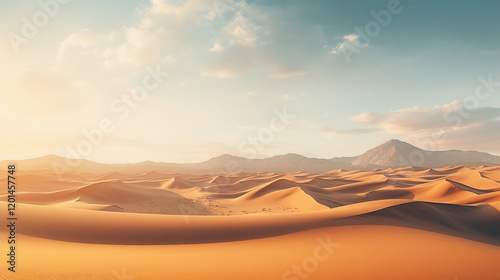 Naklejka premium Golden Desert Landscape with Dramatic Cloudscape