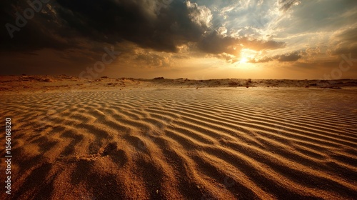 © Ginta, Naklejka premium Golden Desert Sunset with Rippling Sand Dunes