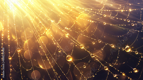 © deafebrisa, Fototapeta premium Golden Dew Drops on a Spiderweb