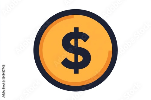 Fototapeta premium Golden dollar coin icon with bold black outline on white background
