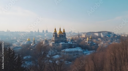 © Berkah, Fototapeta premium Golden Domed Cathedral Winter Cityscape View