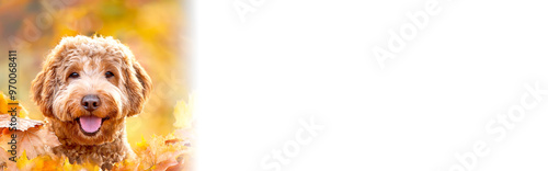 © Sina Ettmer, Fototapeta premium Golden Doodle im Herbstlaub