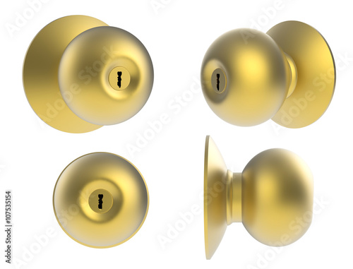 © phonlamaiphoto, Naklejka premium golden door handle on white background