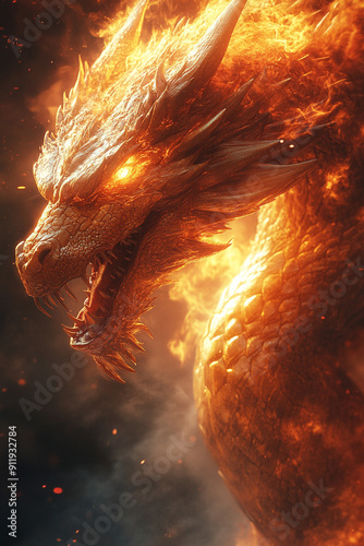 © Masterpieces, Fototapeta premium golden dragon