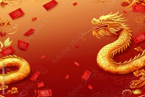 Obraz premium Golden Dragon and Red Envelopes Chinese New Year Celebration