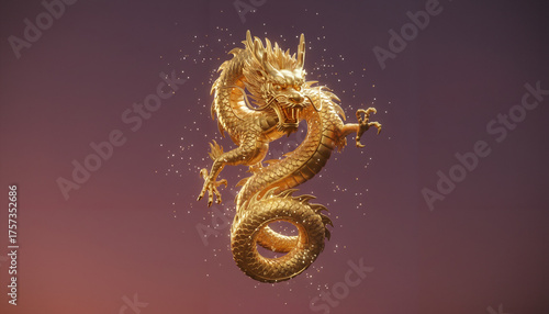 © Tatyana, Obraz premium Golden dragon illustration with sparkling effects against gradient background