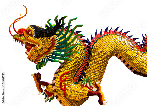 © niksriwattanakul, Fototapeta premium golden dragon isolate