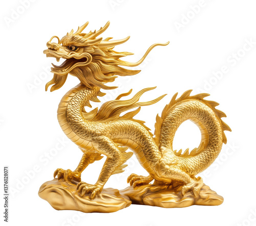 © Khmel, Obraz premium Golden dragon sculpture symbolizing strength and prosperity on a transparent background, cut out