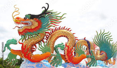 © zilvergolf, Naklejka premium Golden dragon statue.