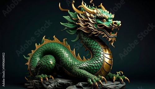 © Nisar Ahmad Khan, Obraz premium golden dragon statue