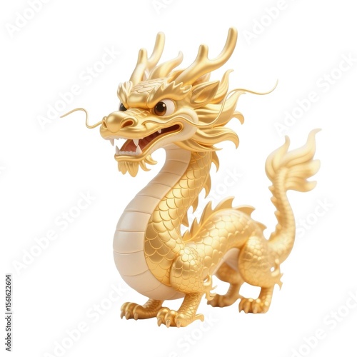 © FM, Obraz premium Golden Dragon Statue: A stunning golden dragon statue, symbolizing power, wisdom, and prosperity, stands proudly on a white background.