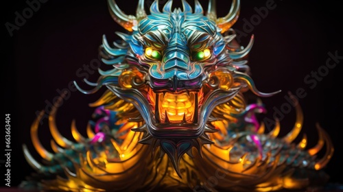Fototapeta premium Golden dragon with colorful neon lights
