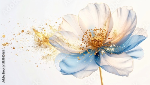 © creativeideh, Obraz premium Golden Dust Blue and White Flower