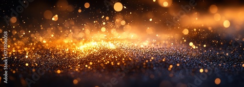 Fototapeta premium Golden dust glimmers softly under a warm light, creating a mesmerizing...