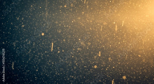 Fototapeta premium Golden Dust Particles Falling: Abstract Dark Background, Warm Light, Magical...