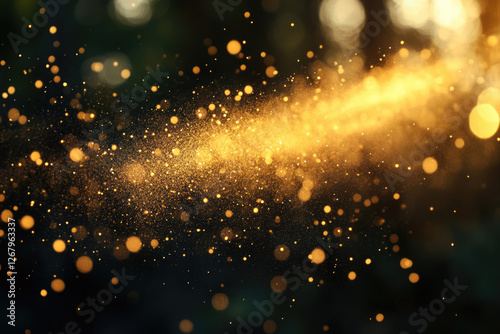 © Vibudhaart, Obraz premium Golden dust particles floating in the air, creating a magical, ethereal glow.