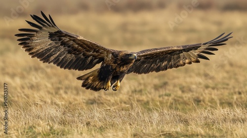 © aulia, Obraz premium Golden Eagle in Flight Over Grassland