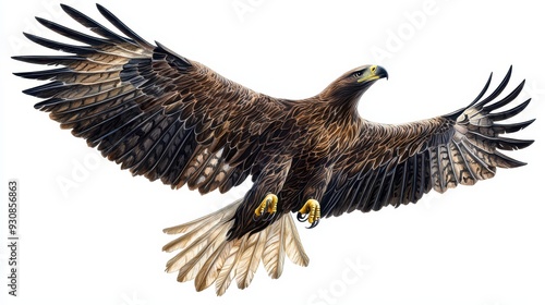 Obraz premium Golden Eagle in Flight Wings Spread White Background