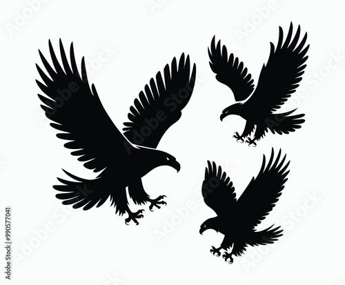 Obraz premium Golden eagle silhouette editable EPS vector isolated illustration template on...
