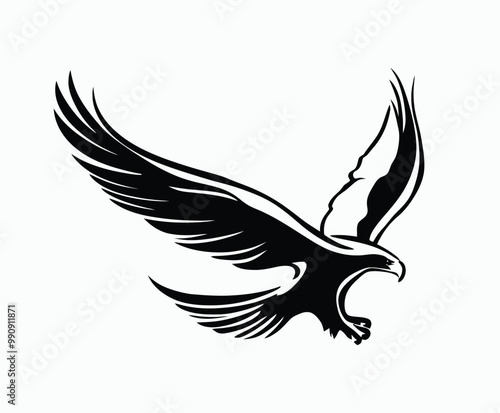 Obraz premium Golden eagle silhouette editable EPS vector isolated illustration template on a white background