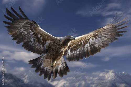 © Azmil, Obraz premium Golden Eagle Soaring in Blue Sky